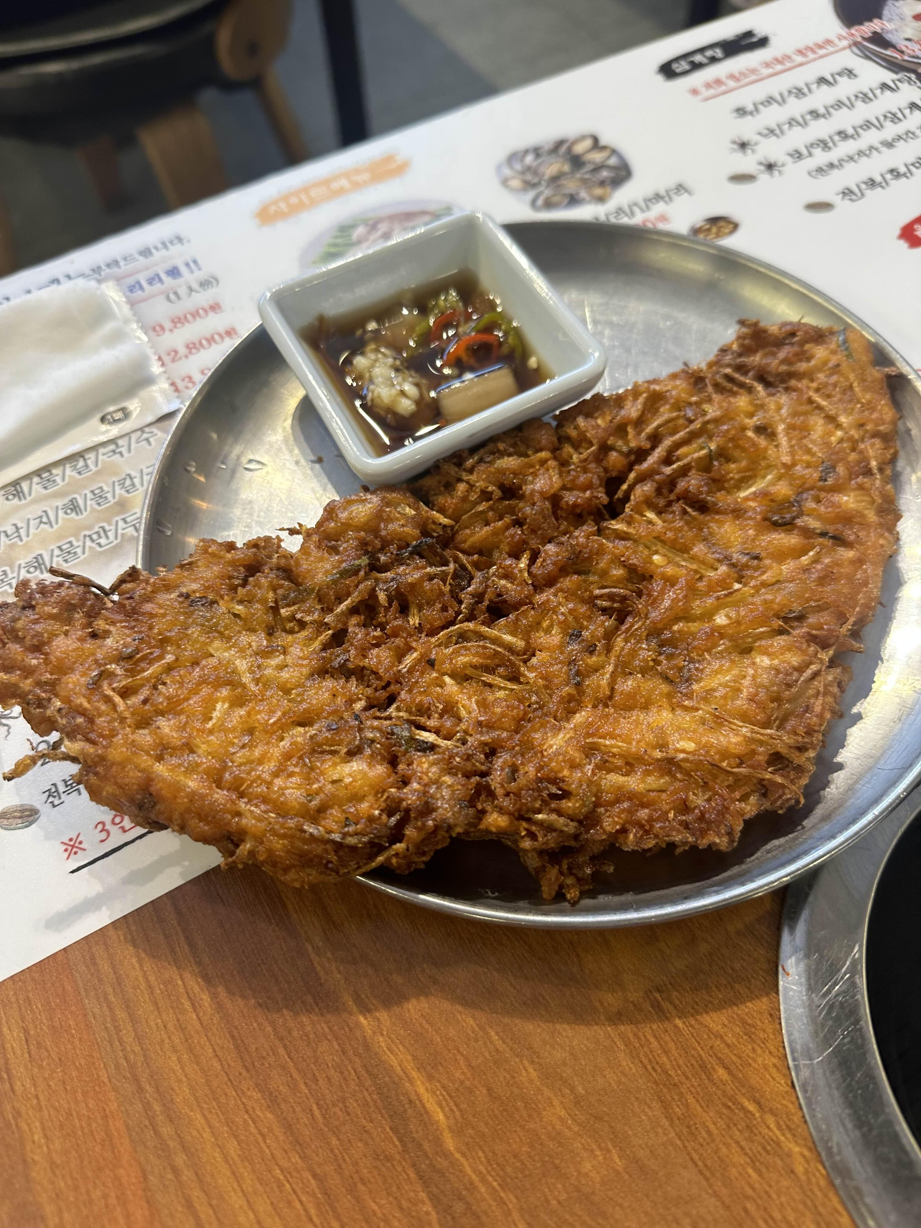 우리는 칼국수 2인분에 녹두전 1개를 시켰다