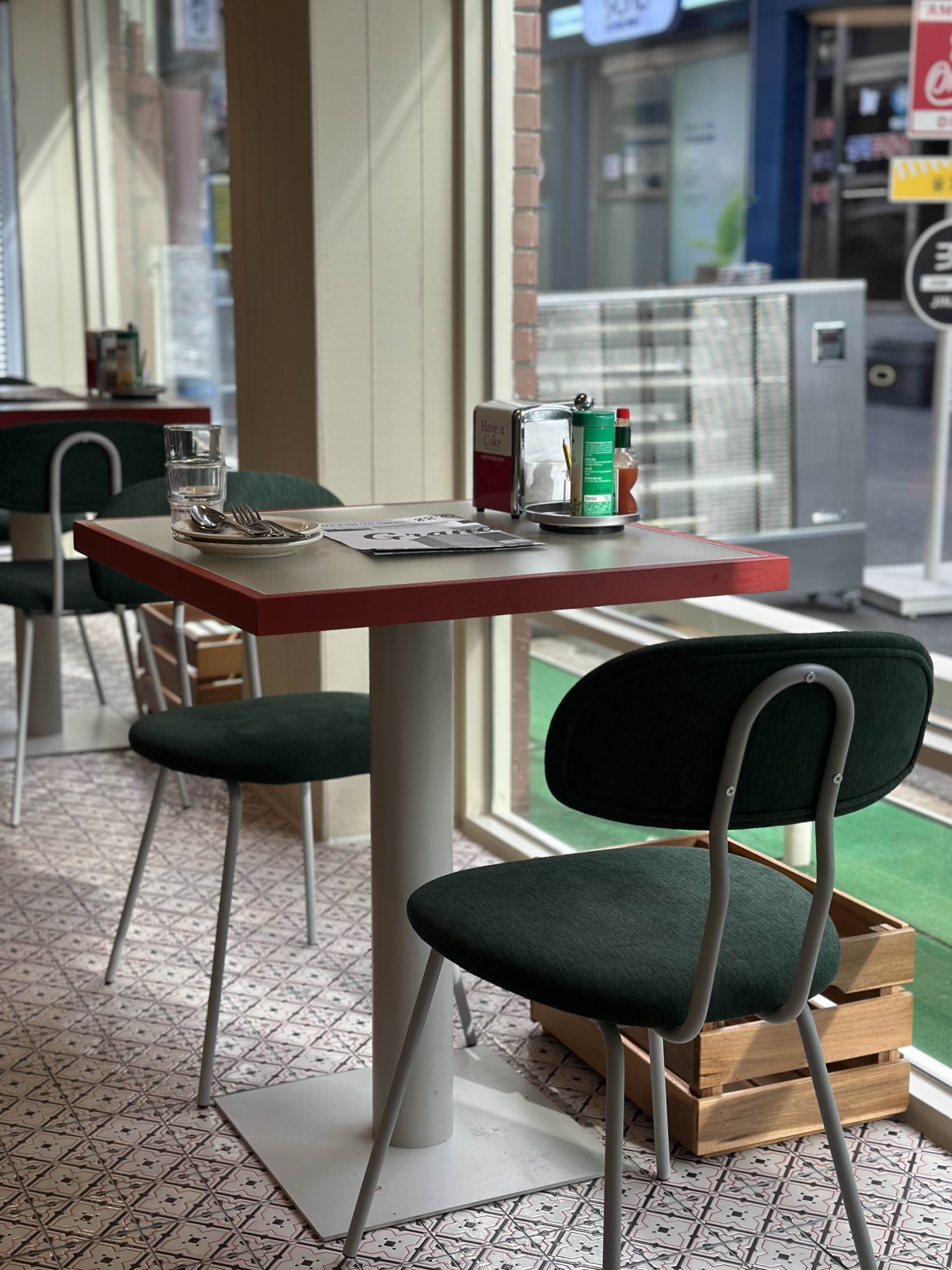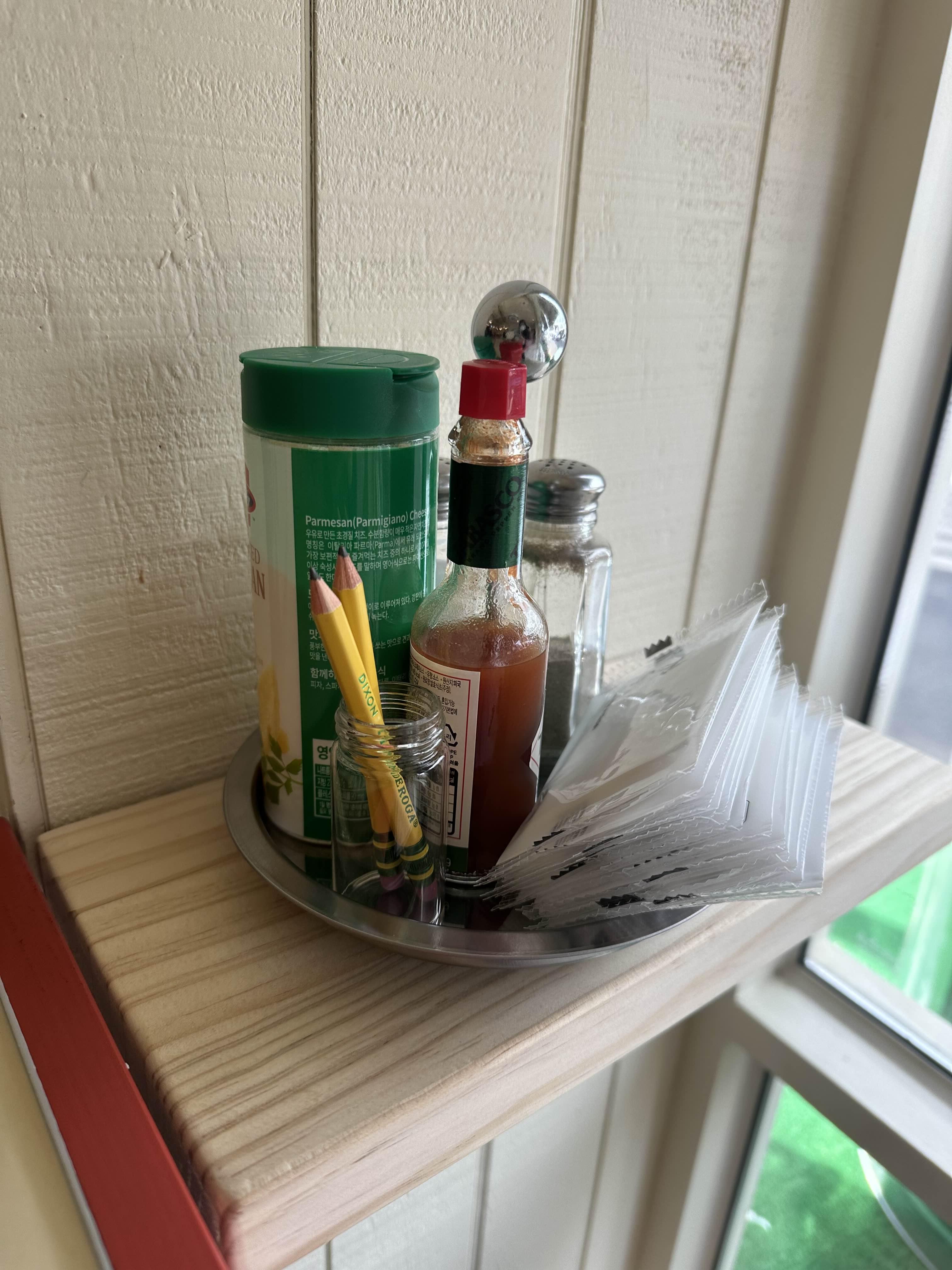 기다리는 동안 식기와 소스들 사진도 찍었다.