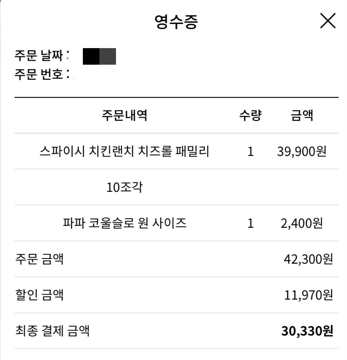 30,330원에 주문했다.